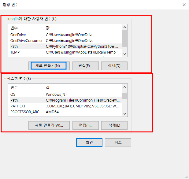 2. 새로만들기를 누르고, 아까 만든 변수를 Path에다가 넣어줄거에요.