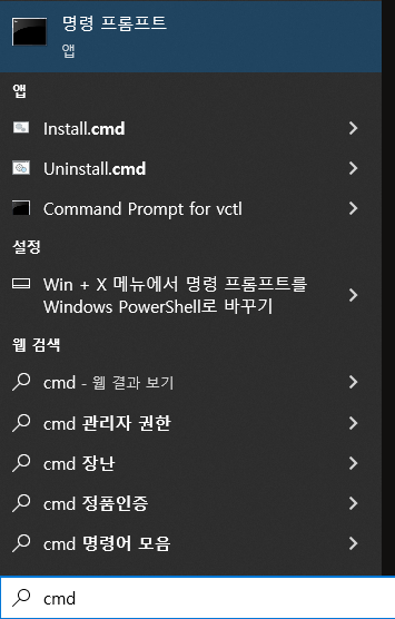 Window -> cmd 검색 후 cmd 창을 켜고